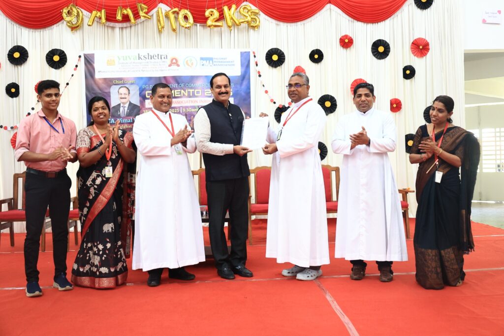 PG Department of Commerce along with IQAC has inaugurated COMMENTO 2K25, Commerce Association Day 2025 by CA Vimal Venu, President of Palghat Management Association. Rev.Dr.Joseph Olikakoonal, Vice Principal presided the Programme. Rev.Dr.Mathew George Vazhayil, Director gave the importance of Innovations in Commerce along with Rev.Dr.Lino Emmatty, TPO felicitated in Inauguration. Dr.Keerthi.M.S, Head PG Department of Commerce welcomed the gathering with the presence of Dr.Ramya.J, Section Head B.Com Taxation. Mr.Albinus Tomy, Commerce Association Secretary gave an official vote of thanks to the Programme. Yims took an Institutional membership with PMA for the benefit of students in the field of Industry & Commerce.