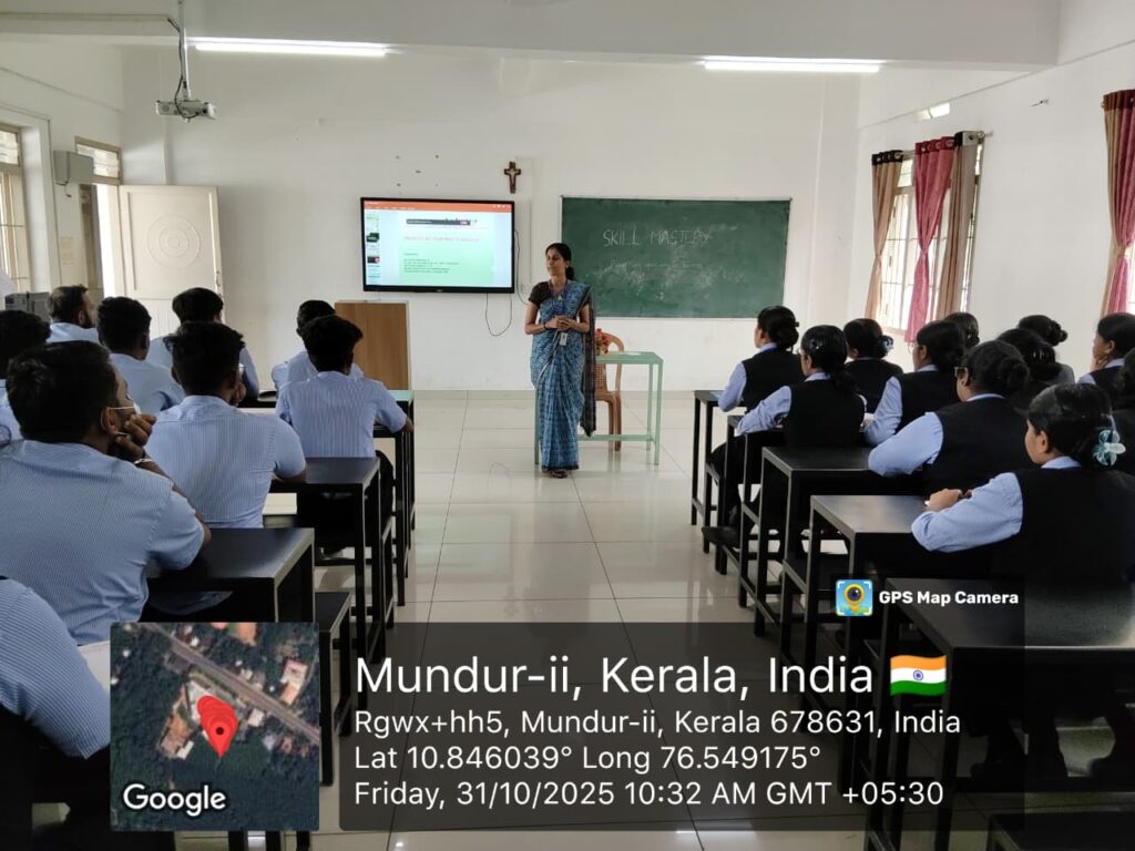 The PG Department of Commerce, Section B. Com CA of Yuvakshetra Institute of Management Studies (YIMS), conducted a session on “Prioritising Your Way to Success” on 31st October 2025 as part of the Certificate Course of Skill Mastery, under the guidance of the IQAC and Skill Formation and Enhancement Committee. Ms. Rajitha Rajendran R, Section Head of B. Com CA, Convener of the Skill Formation and Enhancement Committee, and a Certified Soft Skill Trainer, led the interactive session, highlighting the importance of prioritisation, self-discipline, goal setting, and effective time management. The engaging session motivated students to develop a structured and focused approach towards achieving academic and personal success.